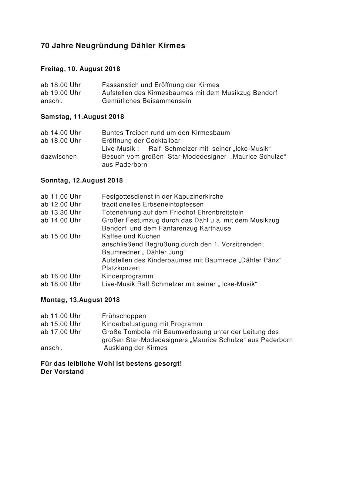 Stand der Termine 13.7.2018, Änderungen vorbehalten